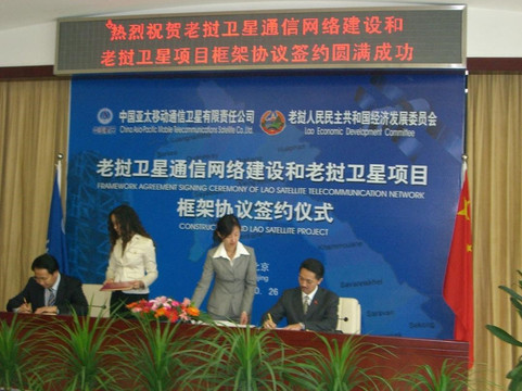 于2005年代表老挝政府与中国航天部签署老挝一号通信卫星发射合作协议